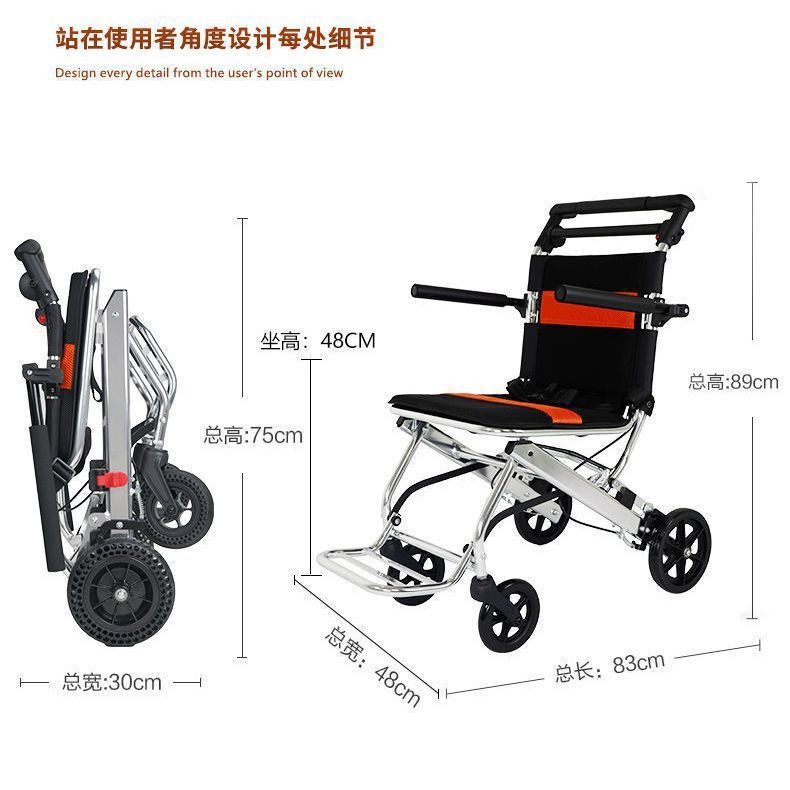 一体式手动轮椅轻便折叠小型老人孕妇散步旅游代步车残疾人手推车